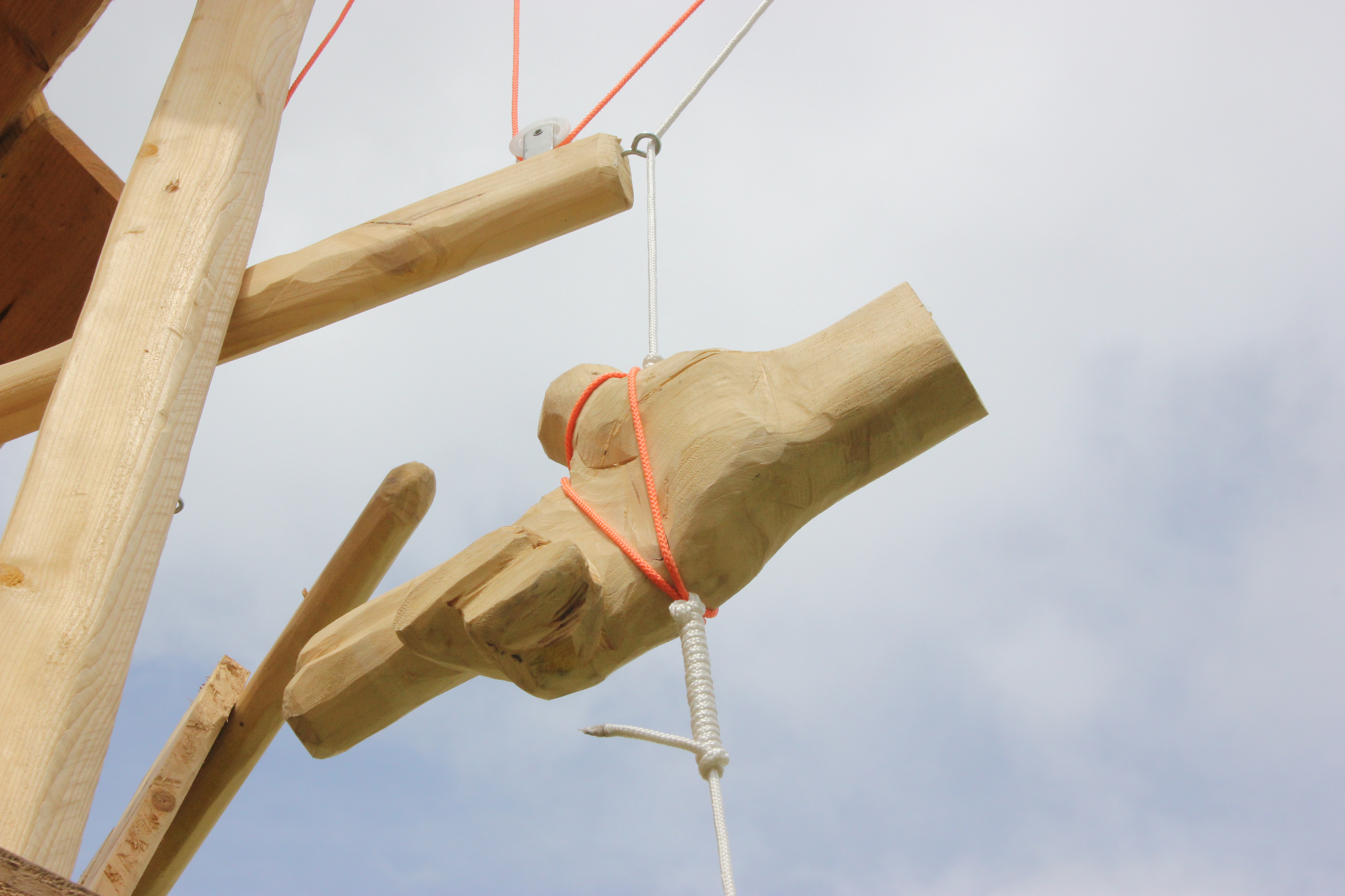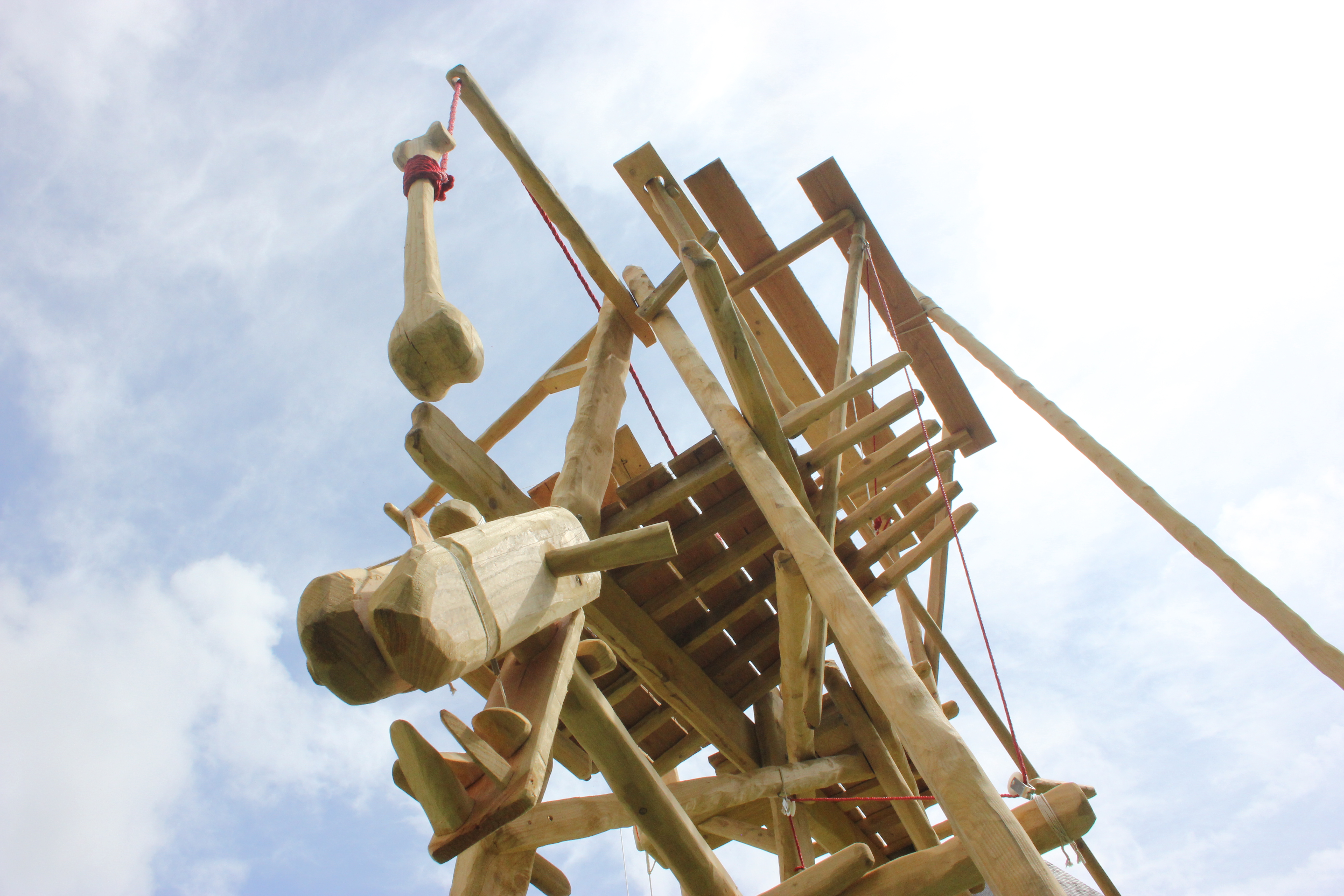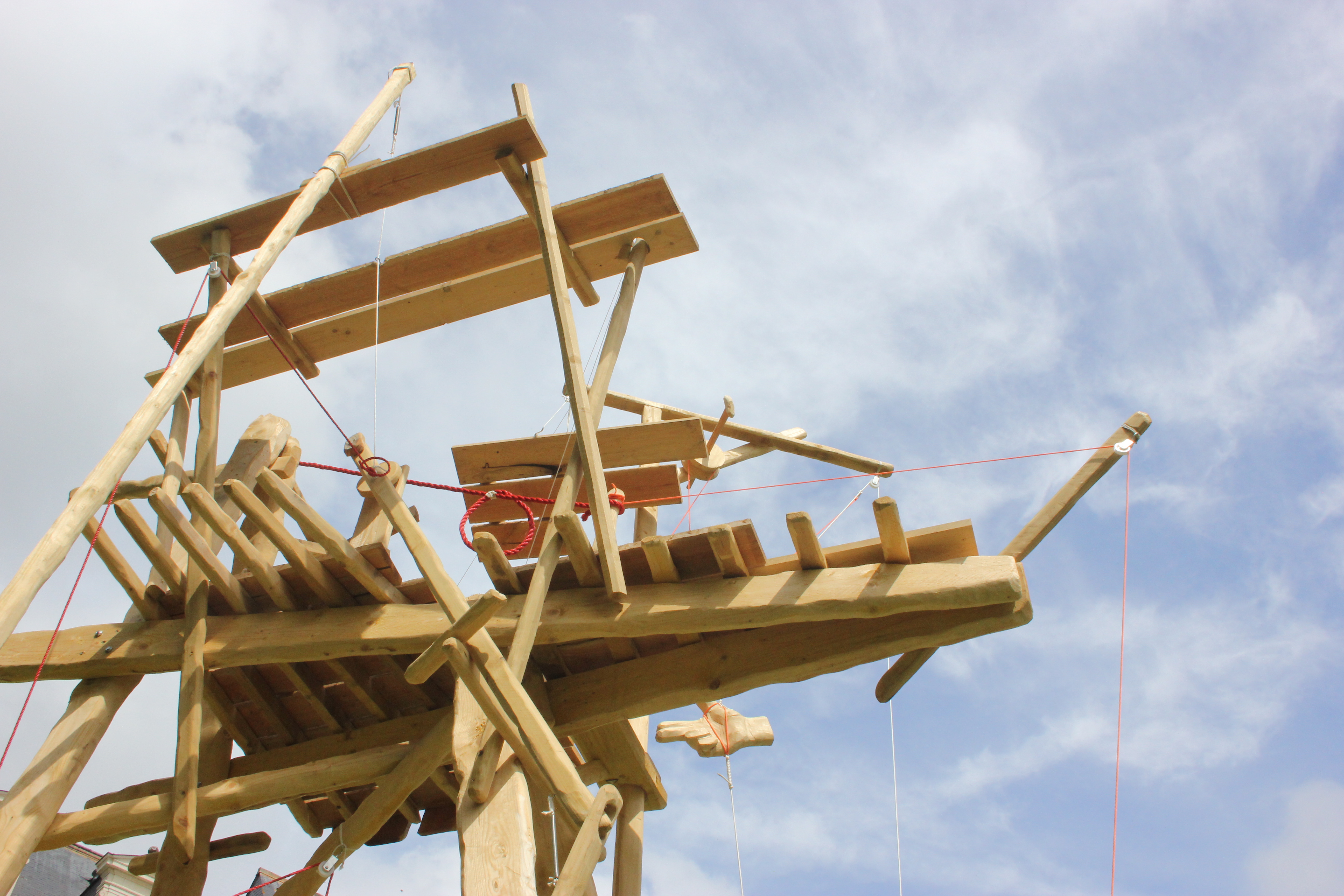 Résidence Grand air / Abbaye de Fontevraud – 2018. Pin, éléments métalliques, ficelles polyesther et coton.500 x 400 x 300 cm